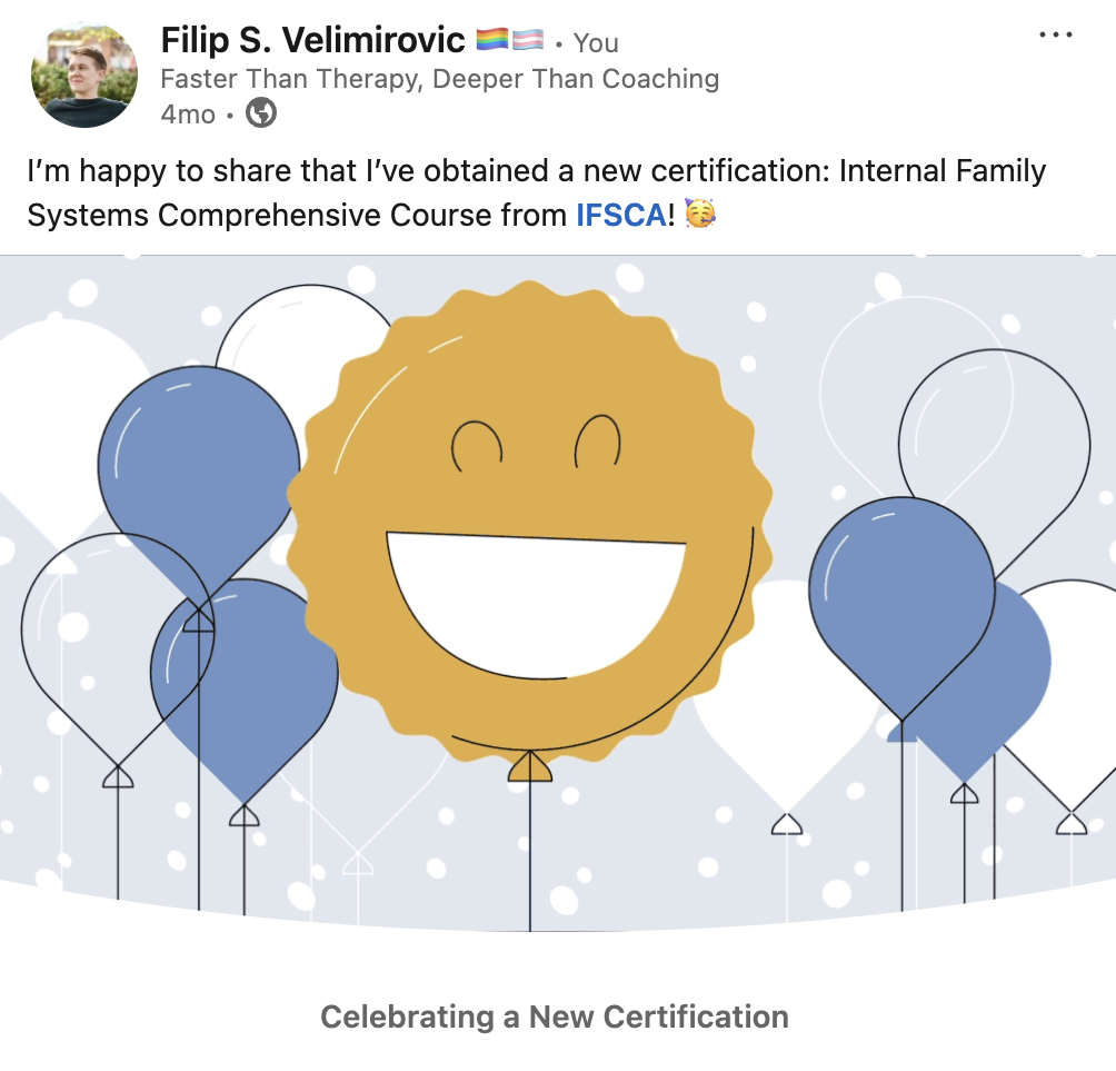 Filip is certified to provide IFS-informed facilitation by some of the best organisations promoting mass mental health and healing